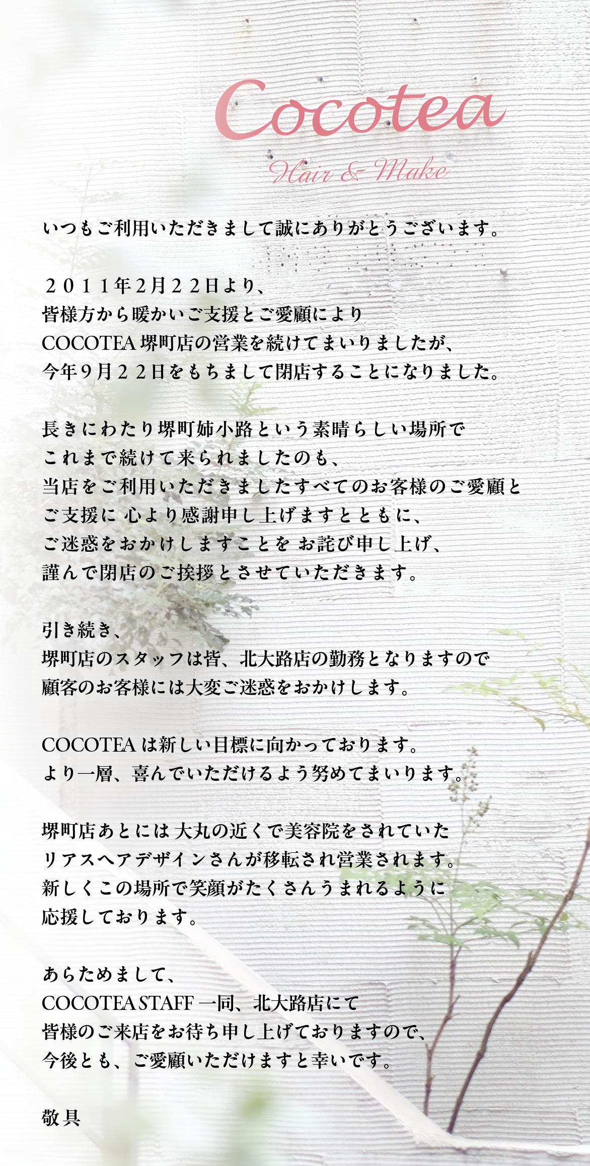 TOTAL BRUSHUP SALON | COCOTEA - ココティ - | 堺町店 ・ 北大路店